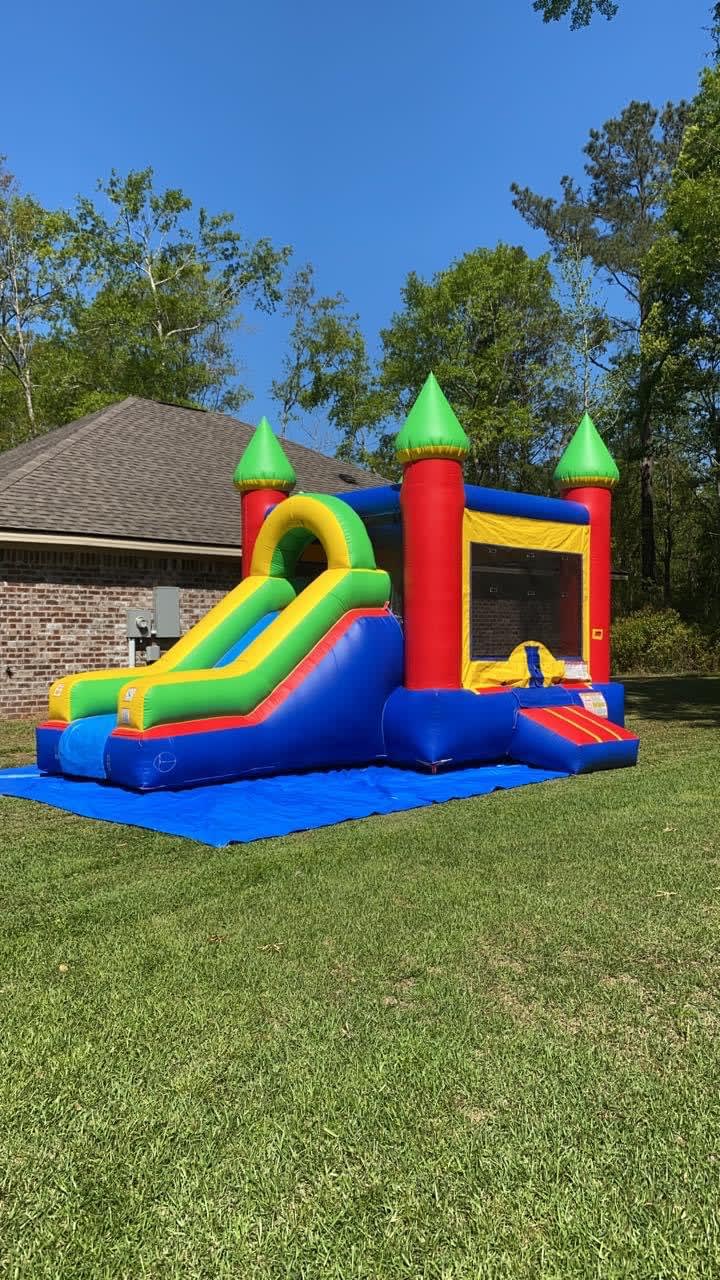 This Bounce House Combination is an excellent unit for kids of all ages! With this unit, kids can jump and slide all day long. This is a Dry Combination Unit; however, we also have it available as a Wet Combination Unit. Bounce House Combinations Wet