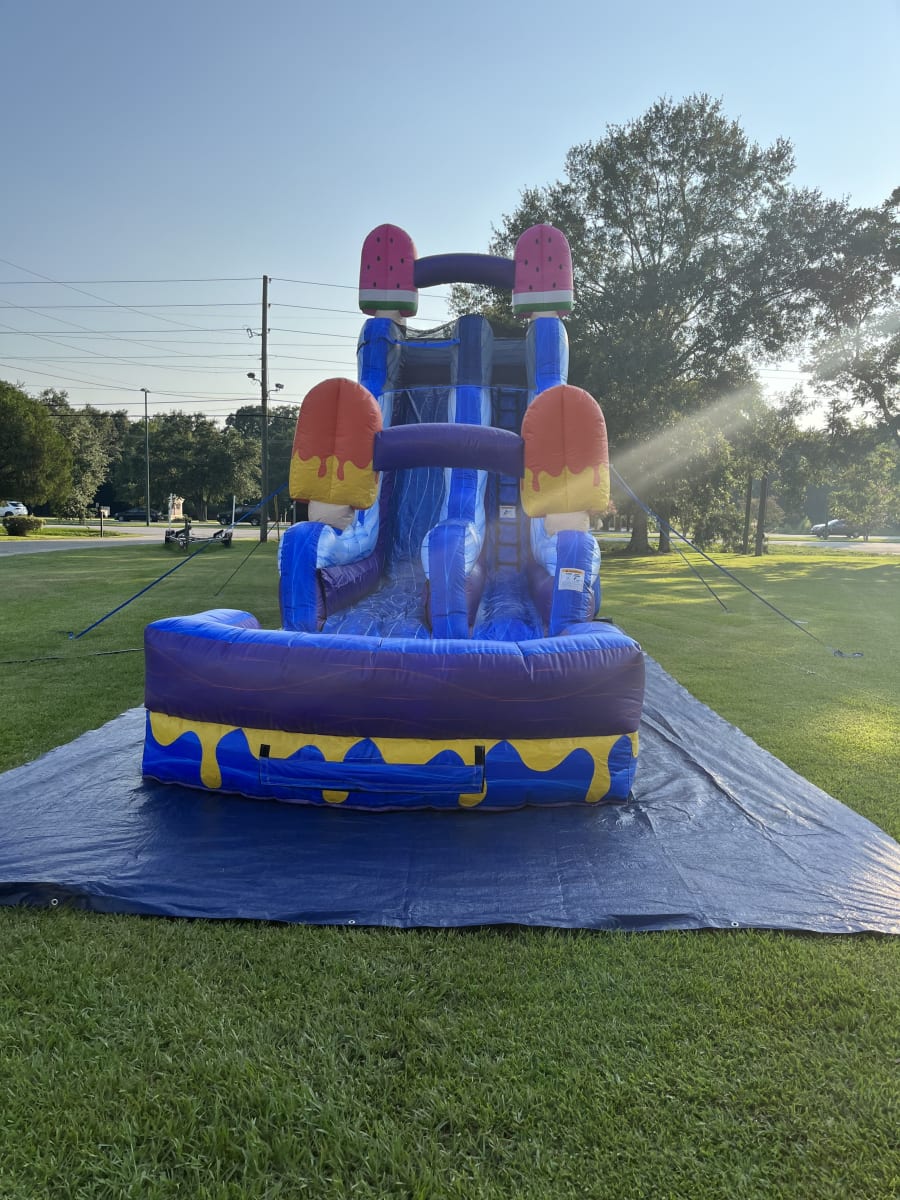 The Pop Ice, A 19 Ft Slide is for all ice cream lovers! Tasty ice pops sit at the entrance and top of the slide. Operate this slide as a wet unit by attaching a hose to the built-in misting system. It’s the tastiest and coolest slide you’ll find, big enough for the entire family to enjoy.